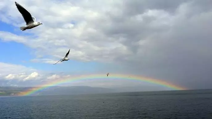 有一番詩意。雨后彩虹,輝煌燦爛,像仙女的彩帶,又像迎接他人的彩橋,仿佛能把人引入神話世界。
